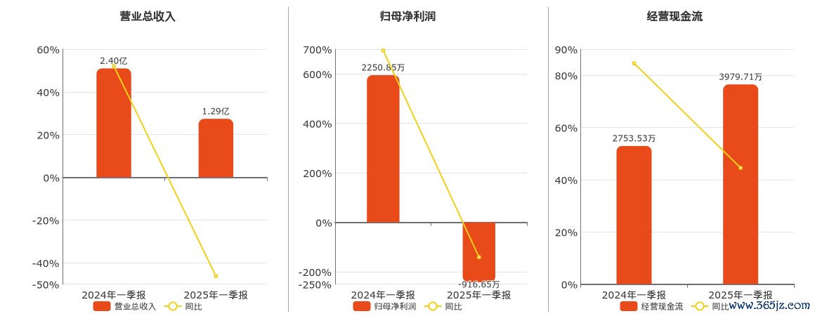 公司营业总收入为1.29亿元319策略,较去年同报告期营业总收入减少1.11亿元,同比较去年同期下降46.26%。归母净利润为-916.65万元,较去年同报告期归母净利润减少3167.50万元,同比较去年同期下降140.72%。经营活动现金净流入为3979.71万元。